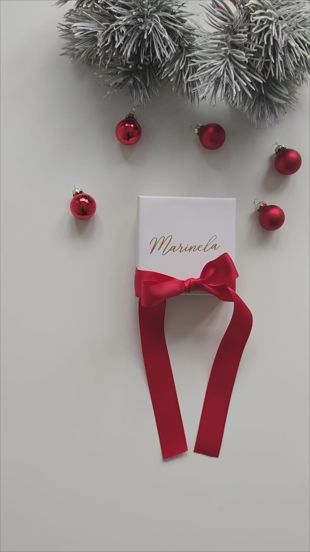The Magic Glam Box collection features personalized compact mirrors, beautifully presented in hand-assembled boxes with your name, a satin ribbon, and a greeting card.