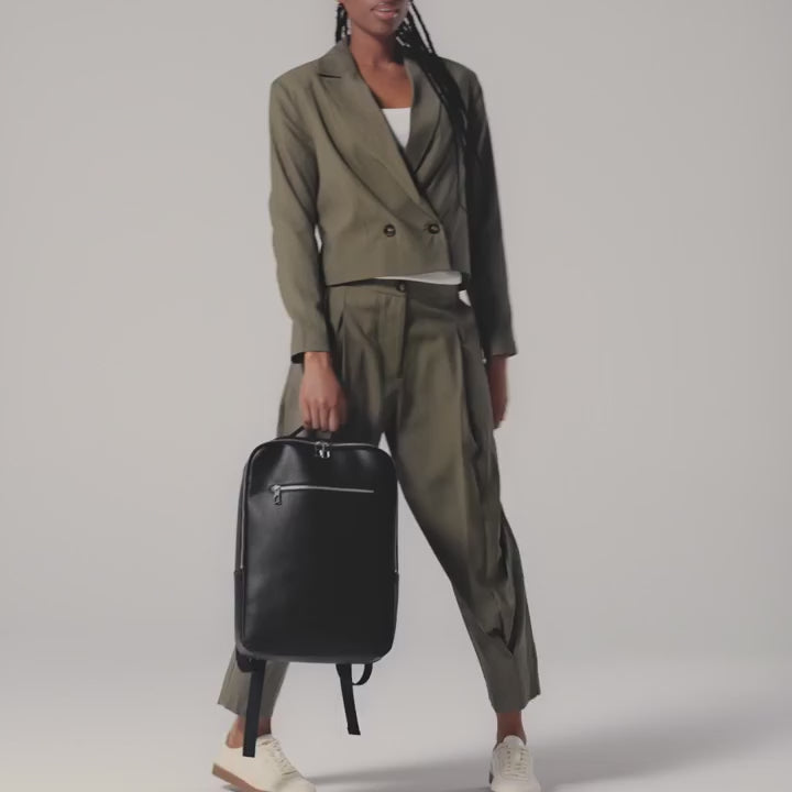 Izrađen s naglaskom na stil i održivost, LUXE poslovni ruksak ima vanjštinu od visokokvalitetne veganske kože i unutrašnjost od 100 % recikliranog poliestera s GRS certifikatom. Zahvaljujući dvosmjernom patentnom zatvaraču, pristup stvarima je brz i jednostavan, a pretinac je prikladan za laptope do 14''. Sakriveni patentni zatvarač za personalizaciju omogućuje dodavanje osobnog pečata, dok prednji džep, brojni unutarnji pretinci i odvojivi, podesivi remen za rame nude dodatnu funkcionalnost i praktičnost.