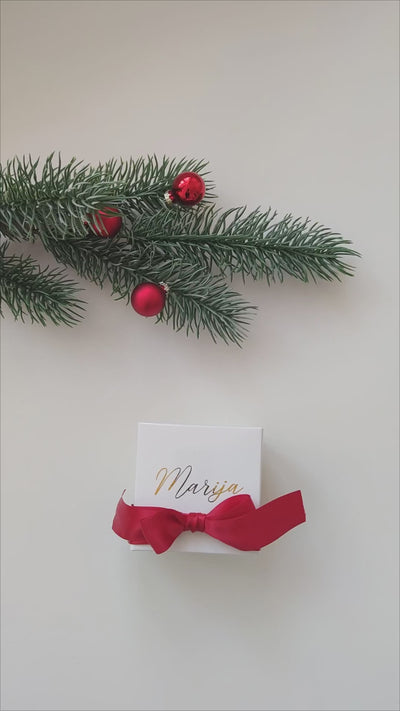 Svaka kutija dolazi s premium satenskom mašnom i personaliziranom božićnom čestitkom na kojoj možeš ostaviti kratku poruku.